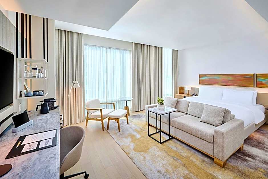 This suite has air conditioning, a coffee machine and a flat-screen TV.
